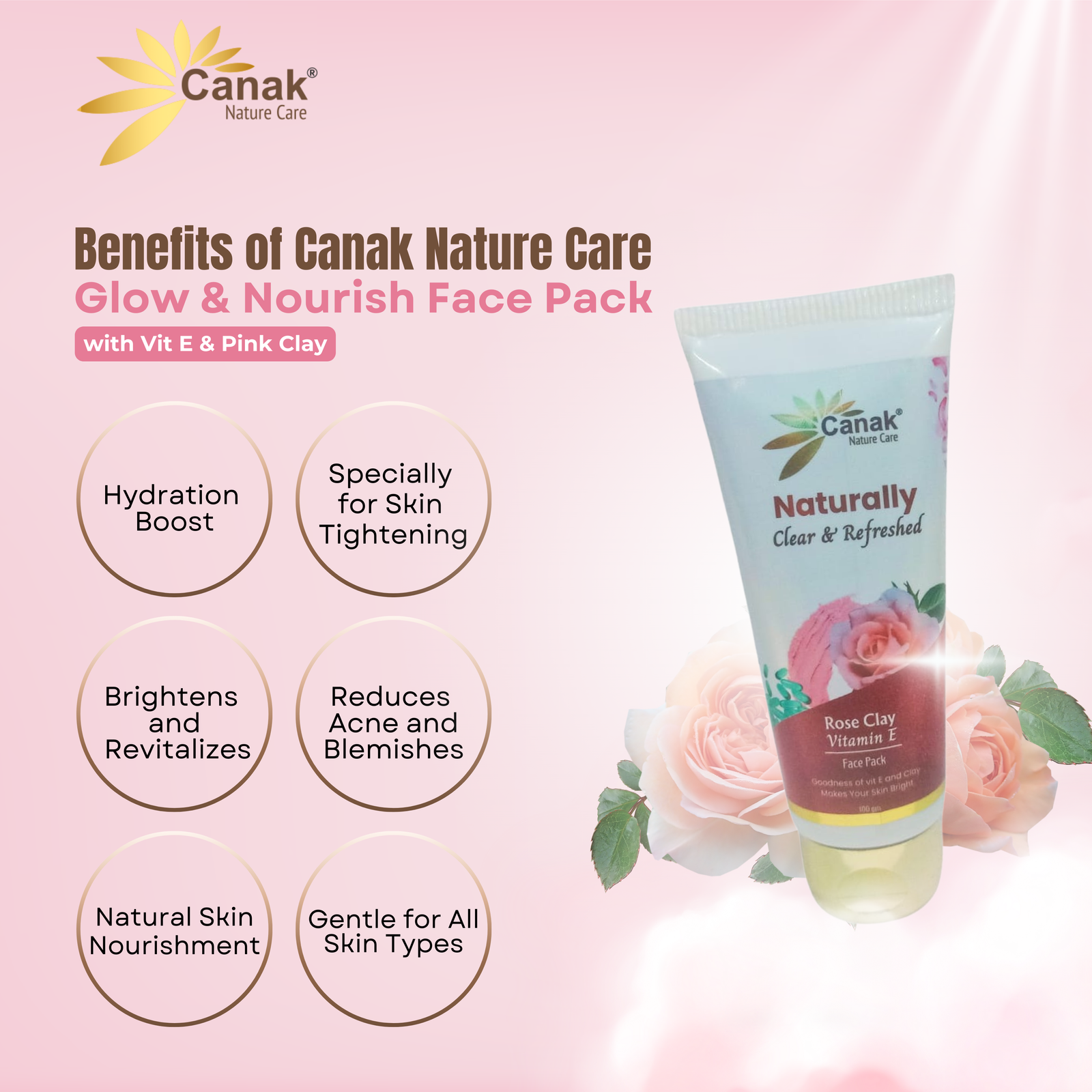 Canak Nature Care Vitamin E & Rose Clay Face Pack is a luxurious skincare solution designed to detoxify and nourish your skin. Infused with the natural goodness of Rose Clay and Vitamin E Oil, this face pack effectively draws out impurities while providing essential hydration and soothing benefits. Its gentle yet powerful formula reduces redness, improves skin texture, and restores a luminous glow. Suitable for all skin types, it’s the perfect addition to your skincare routine for glowing, healthy, and refreshed skin.